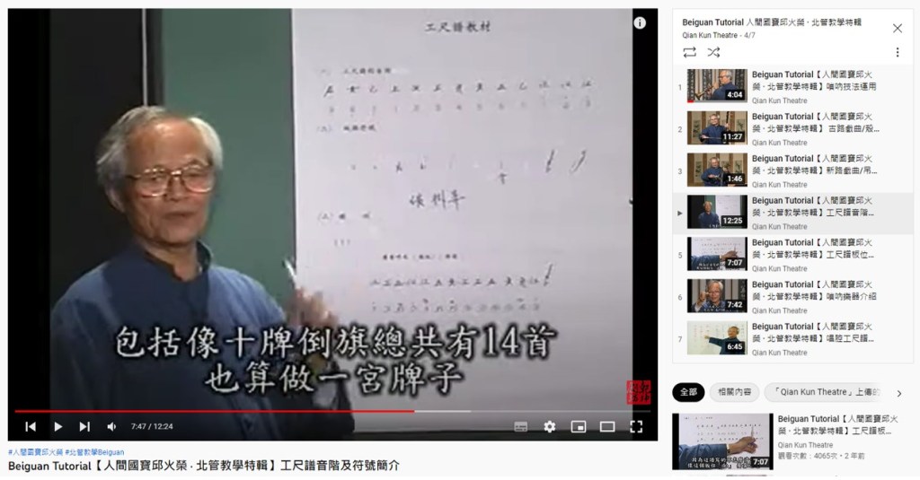 傳統曲藝愛好者近年可在YouTube頻道上看見一位身著立領藍褂、面戴金框眼鏡的白髮長者,時而打著板撩演示北管新舊路牌子,時而就著掛報做工尺譜教學,從最基礎的合士乙上ㄨ音階到板眼符號,從弦嗩樂器到板式介紹,深入淺出,樣樣不馬虎,這位長者即是「人間國寶」邱火榮老先生,前述網路上流傳的教學影片,則來自邱婷在2000年為保存父親的藝術而製作出版的《北管牌子音樂曲集》,爾後她又在2002年推出了由父親擔任後場,母親「亂彈嬌」潘玉嬌、姑姑劉玉鶯演唱折子的《北管戲曲唱腔教學選集》。