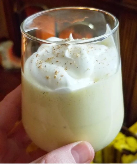 * You don’t need ice cream unless you’ve got people coming and you need to keep it cold. Vanilla ice cream. You can use eggnog. I use vanilla ice cream. 如果還有朋友稍後會到,而你需要讓酒涼著,那就加點冰淇淋,香草冰淇淋。你可以加蛋奶霜,但我都加冰淇淋。