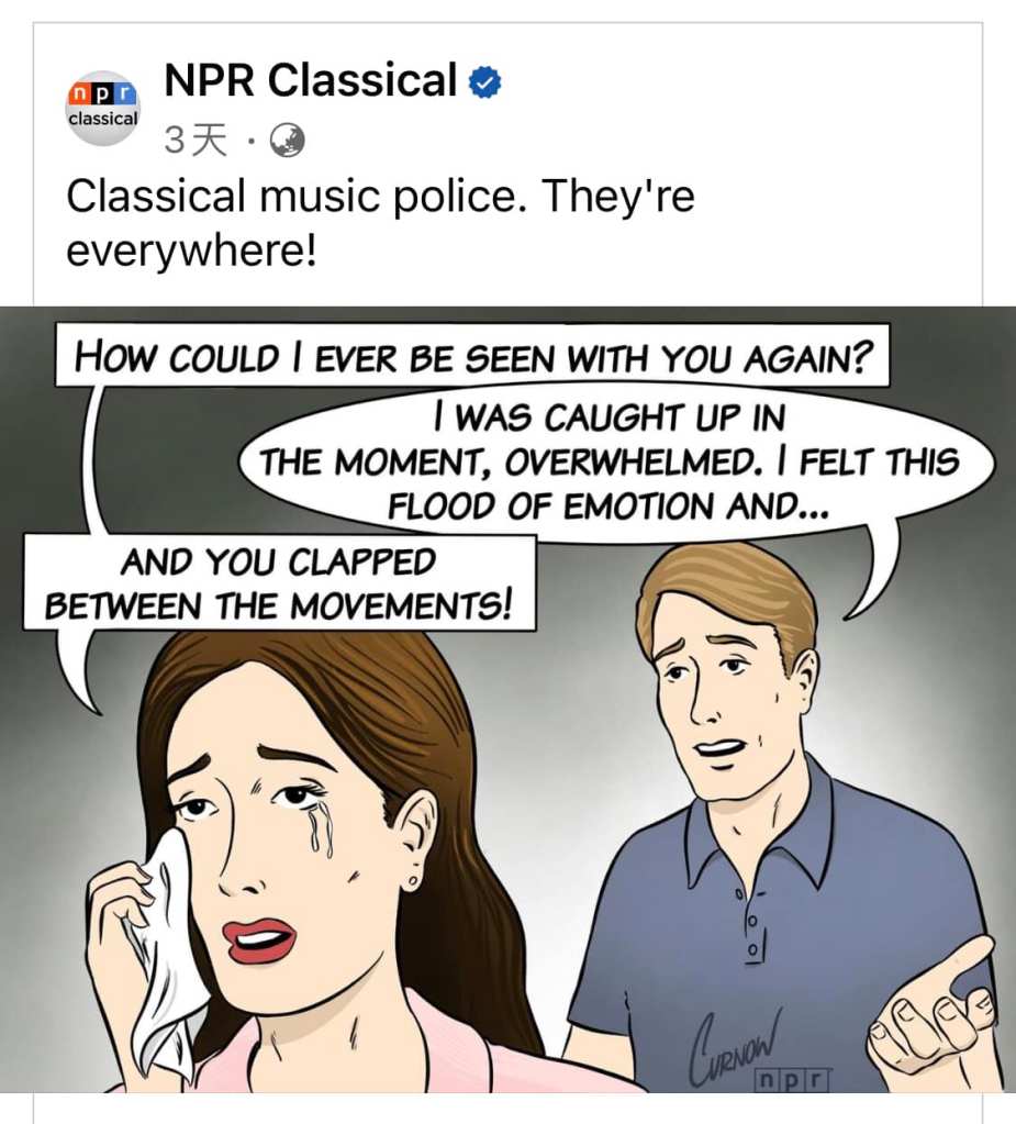 作者使用了lapse of concert etiquette來形容這個每到樂章間必拍手的行為,很明顯地,臺灣人的拍手噩夢如影隨形跟到了美國,但在這裡我想分享一點不一樣的看法與經驗。
