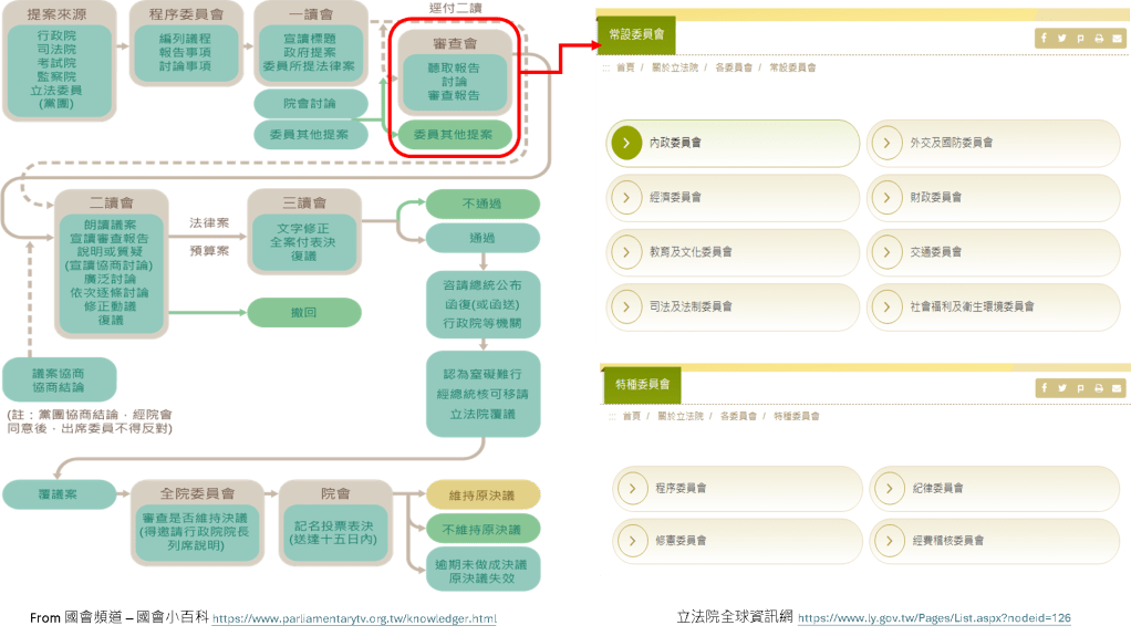 [8] 立法院全球資訊網,開放國會/國會知識家/立法程序https://www.ly.gov.tw/Pages/List.aspx?nodeid=151