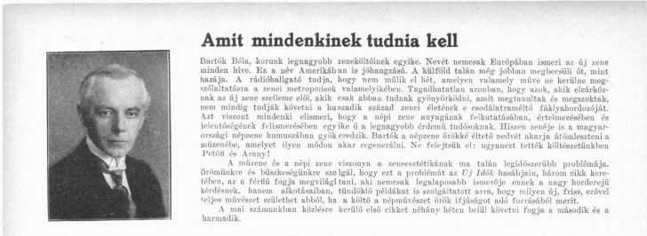 巴爾托克的斜槓身份包括作曲家、鋼琴演奏家、音樂學院教授、民族音樂學家,在教學、演奏、創作工作之餘,他與高大宜等作曲家們開創出的音樂新方向,也頻繁以文字發表的方式跟社會大眾溝通,這個「大眾」的範疇有多大,可以從發表場域窺知一二。